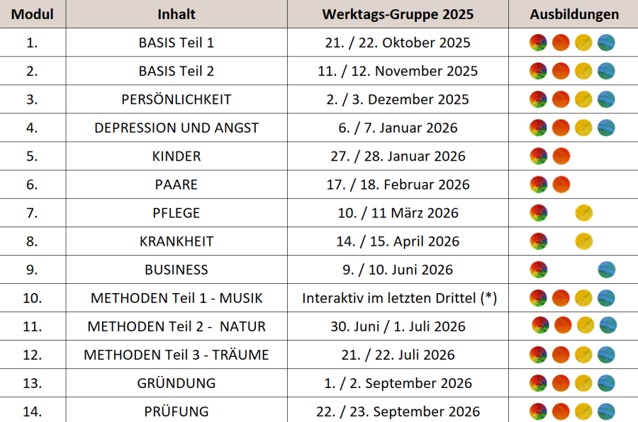 + Ausbildung zum kunsttherapeutischen Coach (nur für die Zielgruppe)