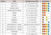 + Ausbildung zum kunsttherapeutischen Coach (nur für die Zielgruppe).